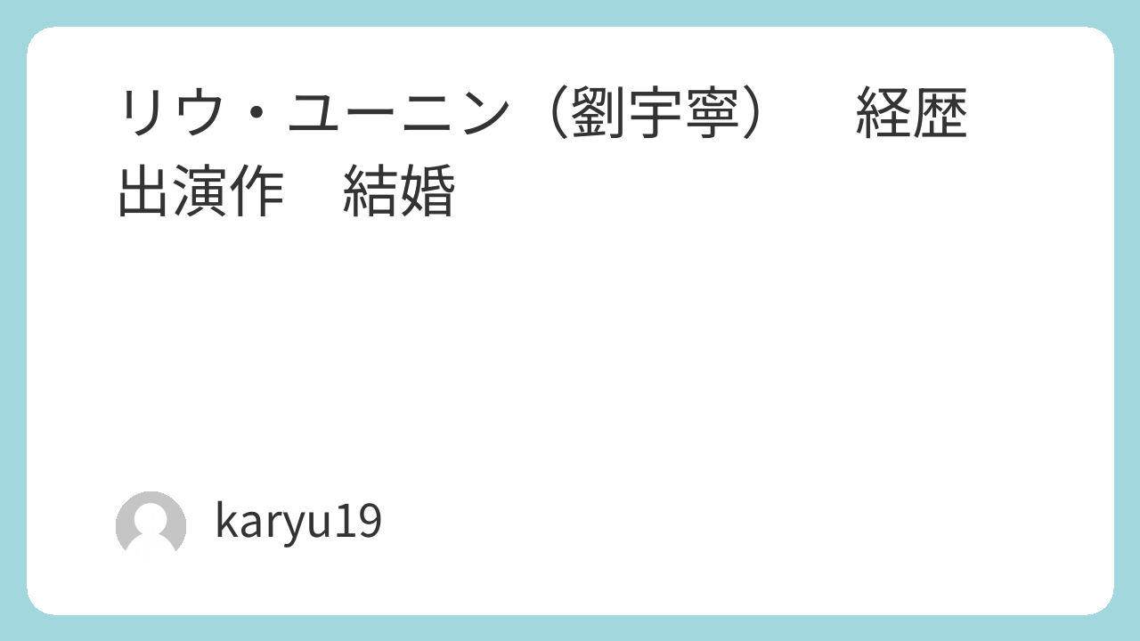 リウ・ユーニン(劉宇寧) 経歴 出演作 結婚